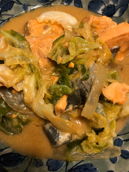 レシピ 日本水産のさけのちゃんちゃん焼き風 冷凍食品の冷食 Com 味噌ベースの調味料で野菜を炒めて合わせました